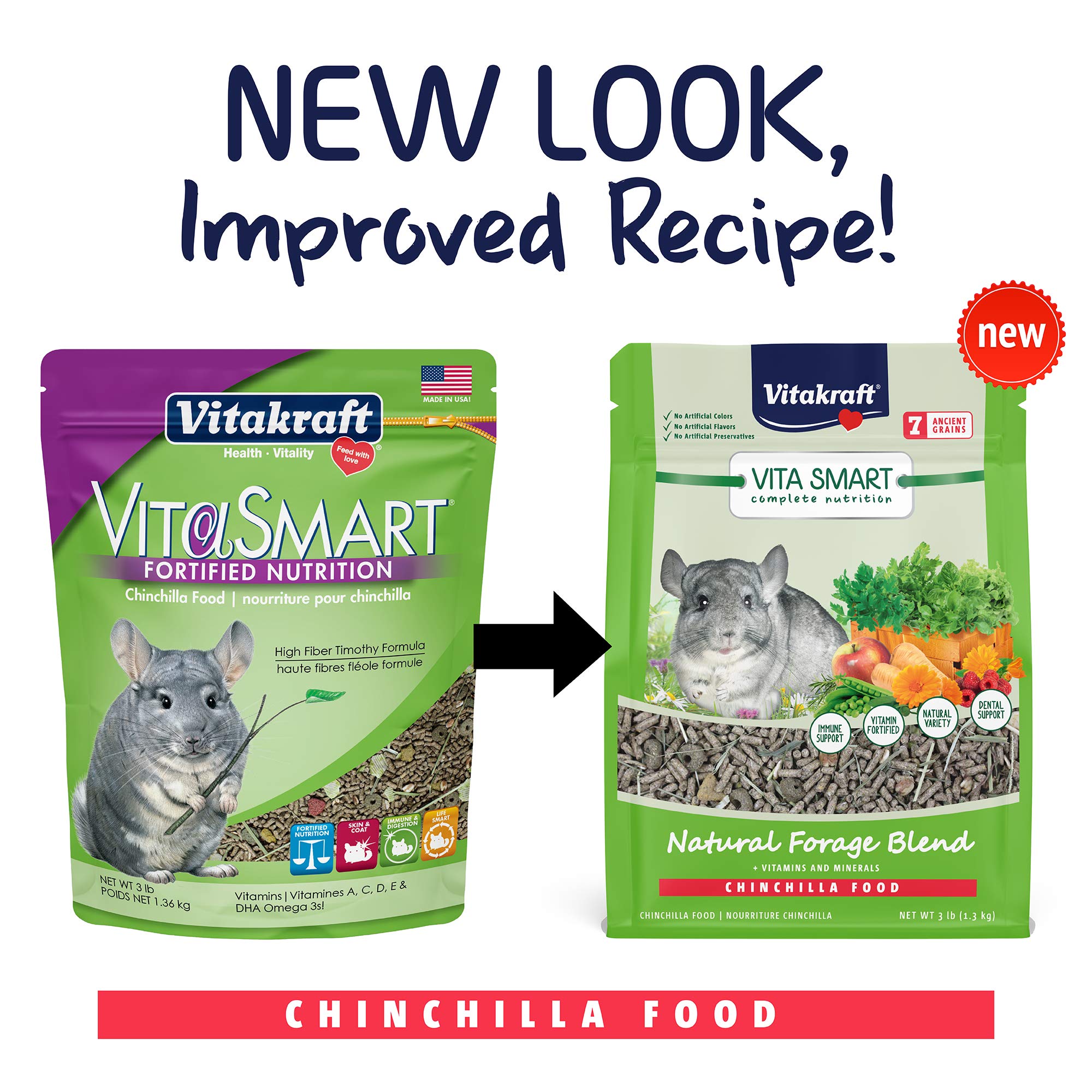 Vitakraft Vita Smart Chinchilla Food - 3 lb Resealable Bag - High-Fiber Timothy Hay First Ingredient with Vitamins Minerals Probiotics - Foraging Mix for Digestive, Dental and Immune Support